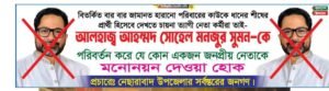 বিএনপির ভারপ্রাপ্ত চেয়ারম্যান তারেক রহমানের সুদৃষ্টিতে প্রার্থী পরিবর্তন এর মাধ্যমে আমরা সকলে ঐক্যবদ্ধ ভাবে সবাইকে সাথে নিয়ে এই আসনটি দেশনেত্রী বেগম খালেদা জিয়া ও ভারপ্রাপ্ত চেয়ারম্যান তারেক রহমানকে উপহার দিতে চাই।