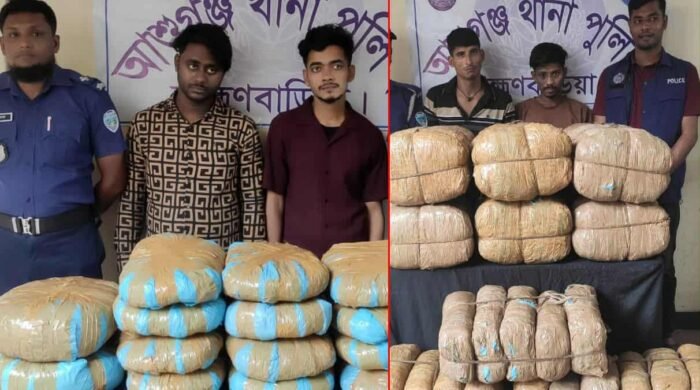 লায়ন রাকেশ কুমার ষোঘ (স্টাফ রিপোর্টার)। ব্রাহ্মণবাড়িয়ার আশুগঞ্জে থানা পুলিশের দুটি অভিযানে বিপুল পরিমাণ গাঁজাসহ ৪ জন মাদক কারবারীকে গ্রেফতার করেছে আশুগঞ্জ থানা পুলিশ। এ সময় তাদের হেফাজত থেকে মোট