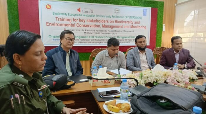 কাপ্তাই প্রতিনিধি। রাঙামাটি কাপ্তাই দিনব্যাপী “জীববৈচিত্র্য এবং পরিবেশ সংরক্ষণ ব্যবস্থাপনা এবং পর্যবেক্ষণ সম্পর্কিত অংশিজনদের নিয়ে মনিটরিং প্রশিক্ষণ” হয়েছে। পার্বত্য চট্টগ্রাম সামাজিক স্থিতিস্থাপকতার জন্য বাস্তুতন্ত্র পুনরুদ্ধার ( BERCR-CHT) বিষয়ে রবিবার সকাল