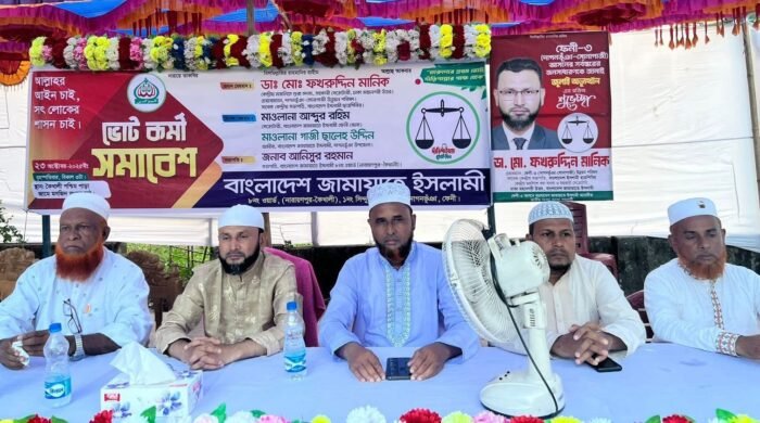 আবুল হাসনাত তুহিন ,ফেনী:- বাংলাদেশ জামায়াতে ইসলামী দাগনভূঁঞা উপজেলা ১নং সিন্দুরপুর ইউনিয়ন ৮নং ওয়ার্ডের উদ্যোগে ভোট কর্মী সমাবেশে প্রধান মেহমানের বক্তব্যে ফেনী-৩ (দাগনভূঁঞা-সোনাগাজী) আসনের জামায়াত মনোনীত সংসদ সদস্য প্রার্থী ডা:
