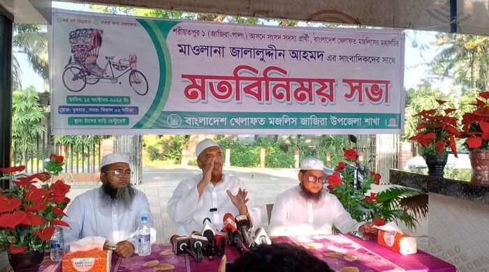 শাহজাদী সুলতানা, বিশেষ প্রতিনিধি। শরীয়তপুর জাজিরায় খেলাফত মজলিস কতৃর্ক সাংবাদিকদের সাথে মতবিনিময় সভা অনুষ্ঠিত হয়েছে। বাংলাদেশ খেলাফত মজলিসের মহাসচিব মাওলানা জালালুদ্দিন আহমেদ বলেন, ফ্যাসিস্ট শেখ হাসিনার আমলে গুম খুনের রাজনীতি